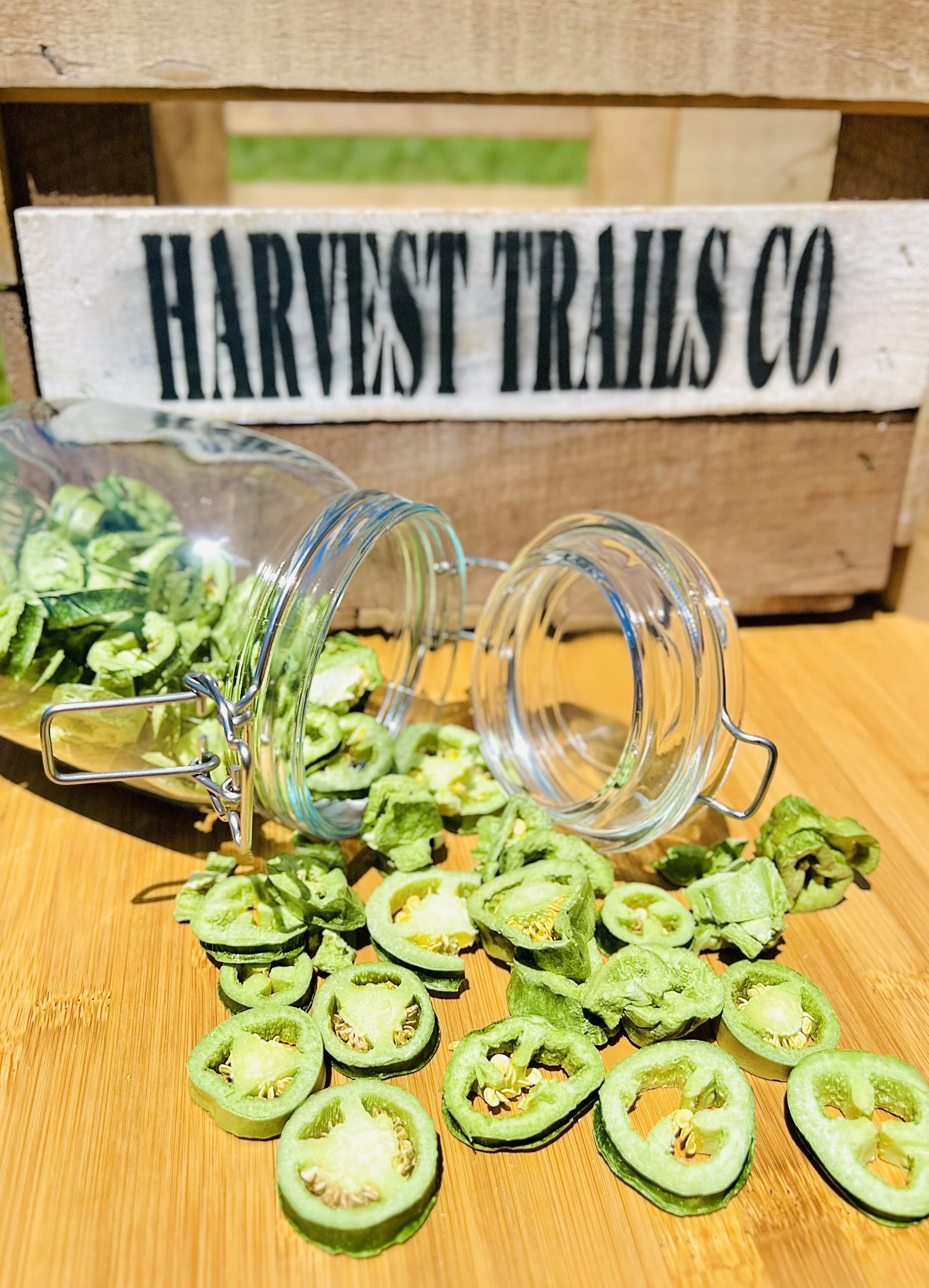 Freeze Dried Grapefruit $12.00 Freeze Dried Limes $12.00 Freeze Dried Oranges $12.00 Freeze Dried Lemons $12.00 Freeze Dried Jalapenos $12.00 Freeze Dried Kiwi $15.00 Freeze Dried Bananas $12.00 Freeze Dried Strawberries $12.00 Sold Out Freeze Dried Raspberries $15.00 Freeze Dried Black Raspberries $17.00 Freeze Dried Blueberries $15.00 Freeze Dried Peaches $12.00 Freeze Dried Pineapples $12.00 Freeze Dried Mango $12.00 Sold Out Freeze Dried Apples $12.00 Freeze Dried Cinnamon Apples $12.00 Freeze Dried Spiced Apples $12.00 Freeze Dried Maple Glazed Apples $12.00 Freeze Dried Cocoa Dusted Strawberries $12.00 Sold Out Hand Deliver Fee $25.00 HARVEST TRAILS - DONATION BAG $12.00